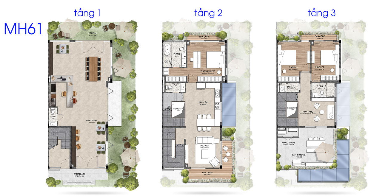 - MH 61: 93,5m² – Tổng sàn: 269,3m²