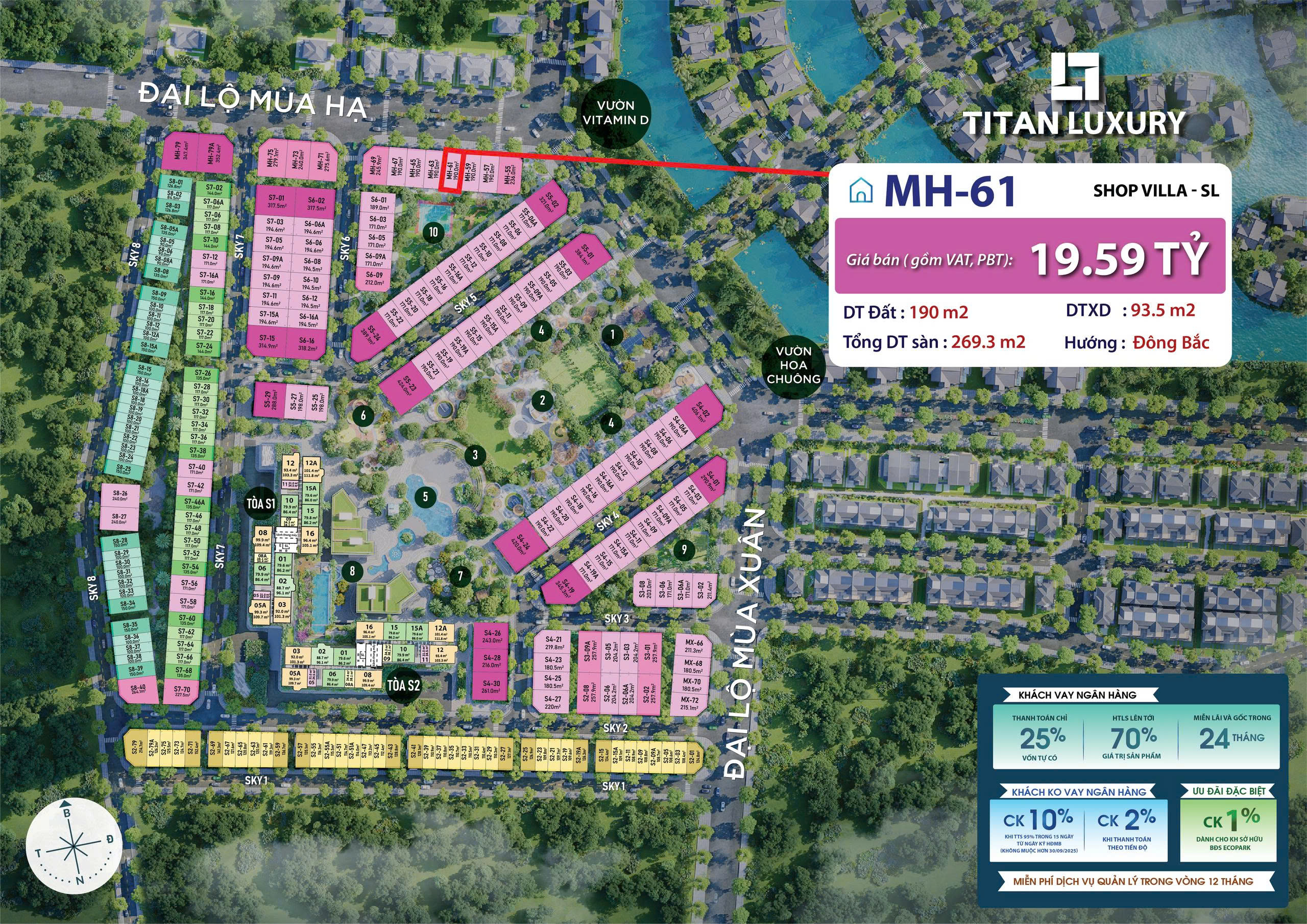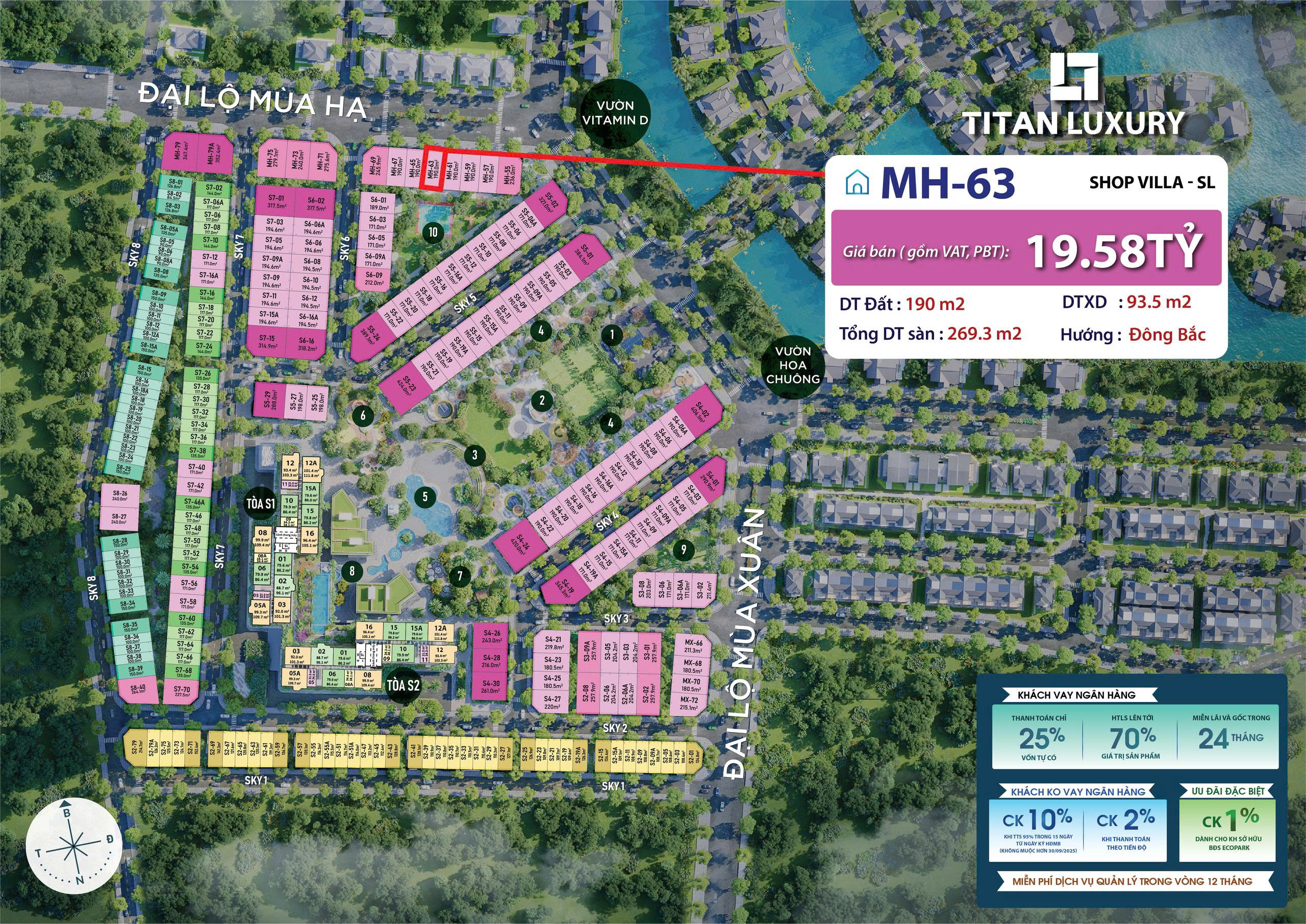 Nếu Anh/Chị đang tìm tài sản Shopvilla có vị trí kinh doanh đắc địa, tiềm năng tăng giá mạnh, lại có thể mua từng căn hoặc mua cả cặp để tối ưu khai thác, thì cặp Shopvilla MH61 – MH63 tại phân khu Mùa Hạ, Eco Retreat chính là lựa chọn hoàn hảo.