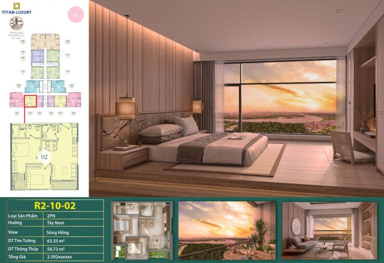 Bán căn hộ 2 phòng ngủ 63,35m2 tầng 10 toà R2 view đẹp chung cư Swanlake the Onsen